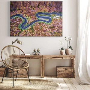 A tela é esticada na moldura. Os lados e bordas são impressos para criar uma continuação da imagem. O quadro está pronto para ser pendurado na parede. Cada produto tem um gancho ligado à moldura e um conjunto de montagem (parafuso + cavilha).