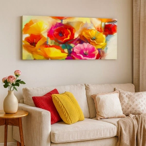 Quadro em tela - Flores abstratas coloridas em um fundo claro - 70x50cm - Não só vermelho - Decoração de parede moderna para a sala de estar e quarto ARTTOR