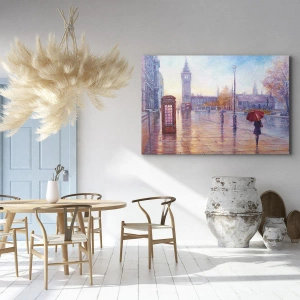 - Esta pintura retrata Londres, com vista para o Big Ben, uma cabine telefônica vermelha e as ruas em um dia chuvoso. A paleta de cores sutil e o toque artístico conferem-lhe um toque romântico e elegante. Perfeito para interiores modernos.
