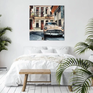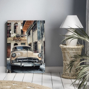 Esta impressão em tela de 70x50 cm, intitulada "Sjesta em Havana", retrata um carro clássico estacionado contra o fundo da arquitetura urbana. O estilo retrô e os detalhes cuidadosamente reproduzidos criam uma atmosfera única que combina perfeitamente com interiores decorados em estilos vintage e moderno.