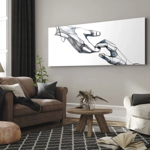 A tela é esticada na moldura. Os lados e bordas são impressos para criar uma continuação da imagem. O quadro está pronto para ser pendurado na parede. Cada produto tem um gancho ligado à moldura e um conjunto de montagem (parafuso + cavilha).