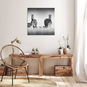 A tela é esticada na moldura. Os lados e bordas são impressos para criar uma continuação da imagem. O quadro está pronto para ser pendurado na parede. Cada produto tem um gancho ligado à moldura e um conjunto de montagem (parafuso + cavilha).