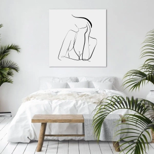 Quadro em tela - Um esboço delicado de uma silhueta feminina em estilo minimalista - 70x50cm - Na onda dos sonhos - Decoração de parede moderna para a sala de estar e quarto ARTTOR