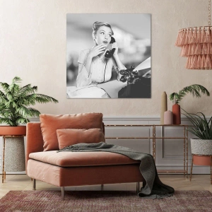 - Esta pintura em preto e branco retrata uma mulher falando ao telefone enquanto está sentada em frente a uma máquina de escrever. Seu estilo vintage captura a atmosfera de tempos passados, perfeito para decorar um escritório ou um interior elegante.