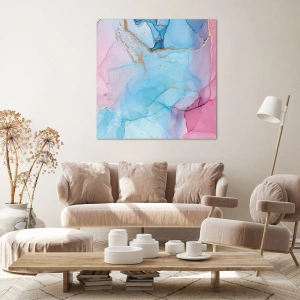 Detalhes dourados adicionam um toque luxuoso à obra, complementando perfeitamente as cores pastéis. Esta obra será perfeita para uma sala de estar, quarto ou escritório, trazendo harmonia e elegância ao interior. O estilo minimalista da pintura permite que ela seja facilmente adaptada a diversos arranjos.