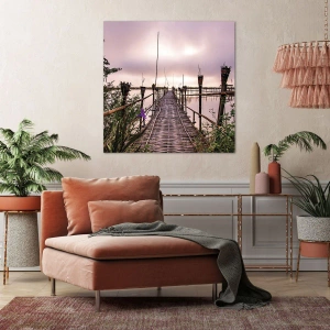 - Esta pintura retrata uma exótica ponte de bambu atravessando a água ao amanhecer, criando uma atmosfera de paz e harmonia. É o complemento perfeito para um interior inspirado na natureza.
