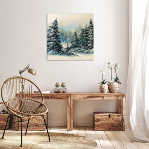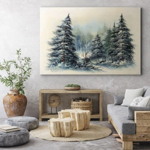 Arte de parede - Pronto para o Natal - Paisagem de inverno com árvores cobertas de neve