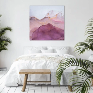 "Ondas de lilás e roxo" é uma pintura única sobre tela medindo 70x50 cm, que retrata uma composição sutil e abstrata em tons de roxo e dourado. Esta obra encanta pela sua elegância e estilo moderno, complementando perfeitamente interiores com um caráter minimalista ou luxuoso.