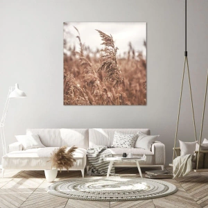 - A pintura retrata gramas douradas balançando ao vento, aninhadas em um cenário outonal. Tons sutis de dourado e bege trazem paz e harmonia a qualquer interior.