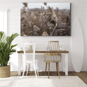 A tela é esticada na moldura. Os lados e bordas são impressos para criar uma continuação da imagem. O quadro está pronto para ser pendurado na parede. Cada produto tem um gancho ligado à moldura e um conjunto de montagem (parafuso + cavilha).
