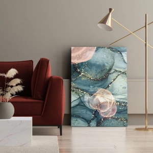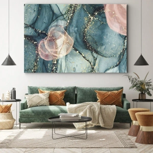 Quadro em tela - Azul seda, rosa tule - 140x50 cm