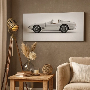 - Esta pintura retrata um conversível branco clássico sobre um fundo claro. Perfeito para interiores retrô e minimalistas, acrescenta elegância e sofisticação.