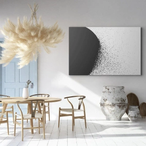 A pintura, com dimensões de 70x50 cm em formato horizontal, foi criada em tela de alta qualidade pelo fabricante ARTTOR. Seu caráter universal a torna adequada tanto para salas de estar, quartos quanto para escritórios. O estilo minimalista, combinado com a clareza do preto e branco, cria um elemento decorativo único que atrai o olhar e adiciona elegância ao interior.