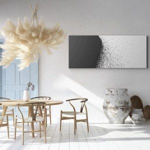 Quadro em tela - Padrão abstrato com partículas pretas em um fundo claro - 70x50cm - Movimento das moléculas - Decoração de parede moderna para a sala de estar e quarto ARTTOR