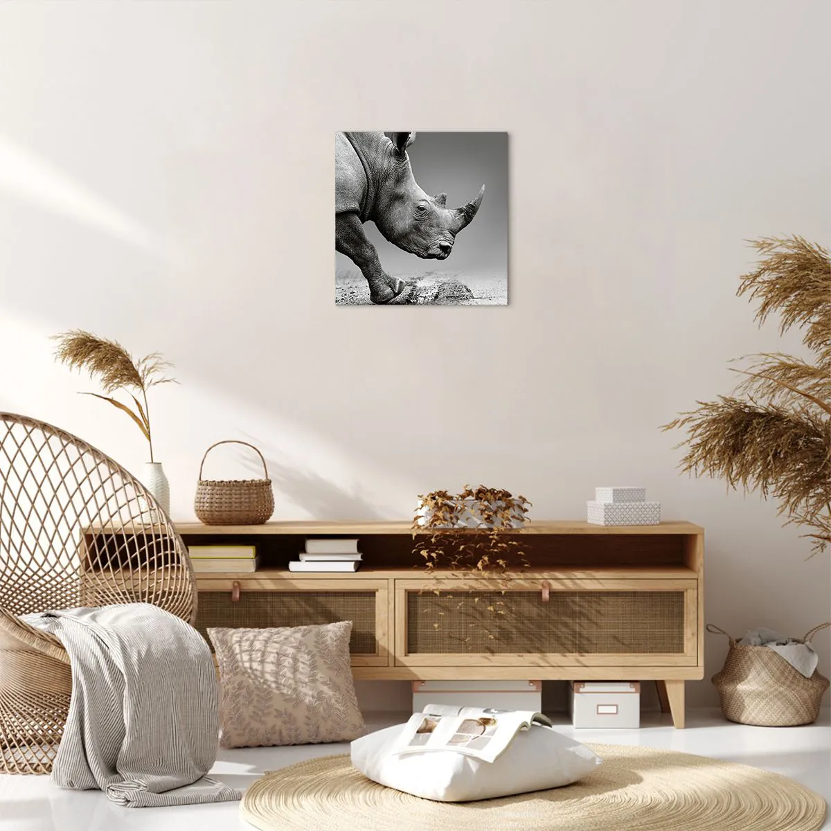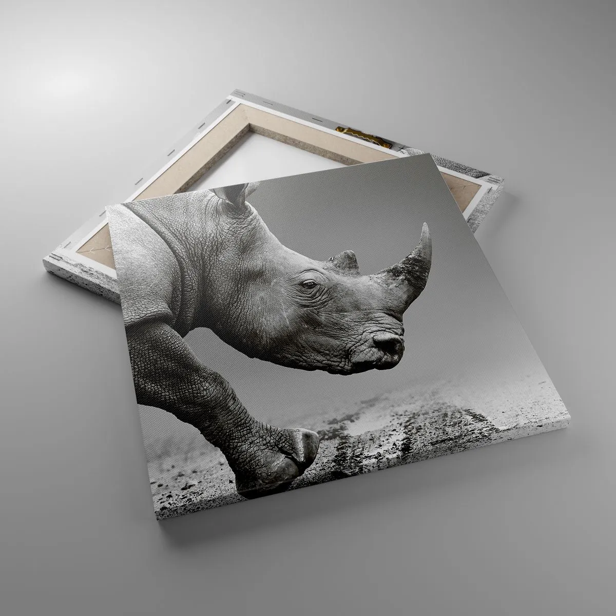 A tela é esticada na moldura. Os lados e bordas são impressos para criar uma continuação da imagem. O quadro está pronto para ser pendurado na parede. Cada produto tem um gancho ligado à moldura e um conjunto de montagem (parafuso + cavilha).
