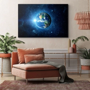 Quadro em tela - Terra no espaço cercada por estrelas e luz - 70x50cm - Estamos no céu - Decoração de parede moderna para a sala de estar e quarto ARTTOR