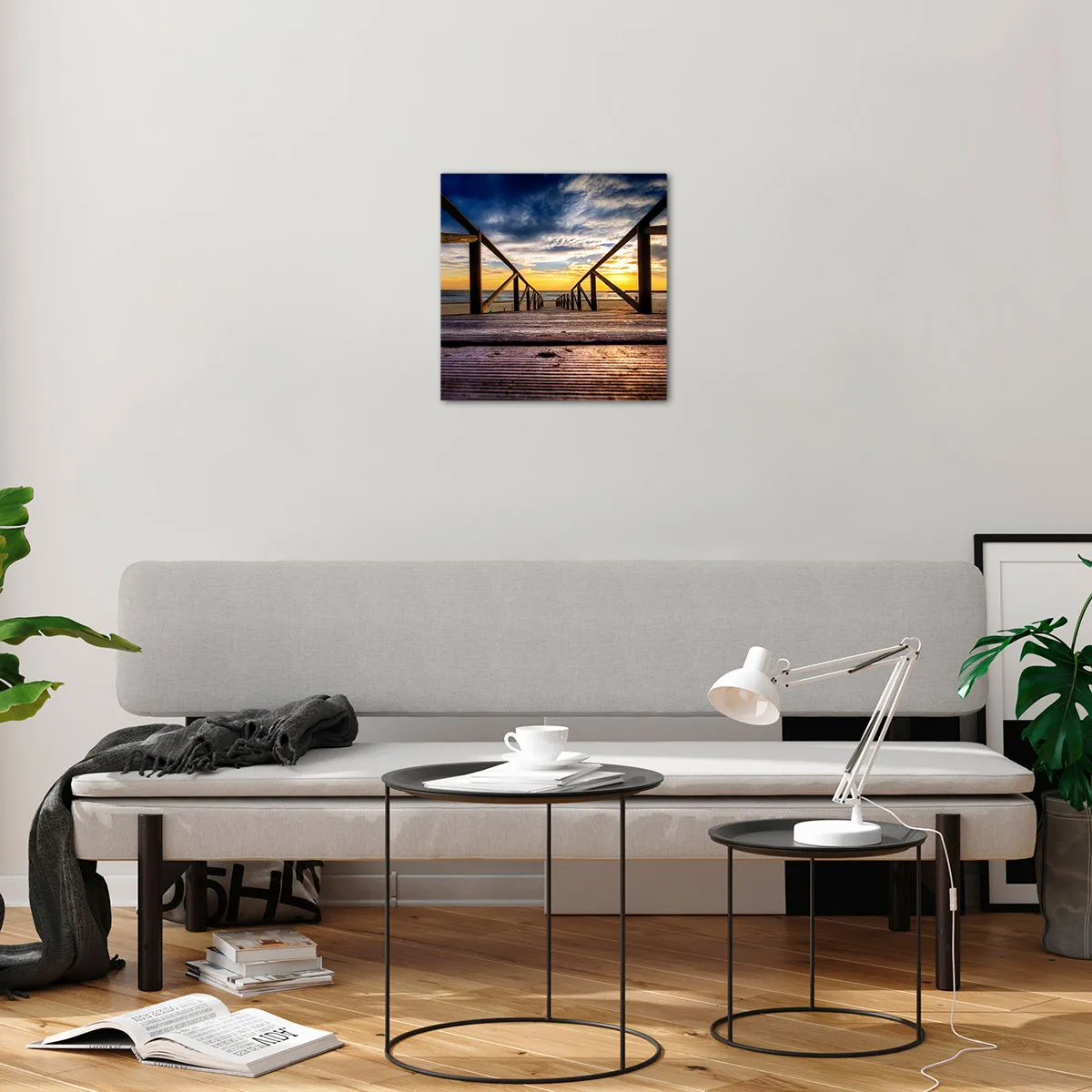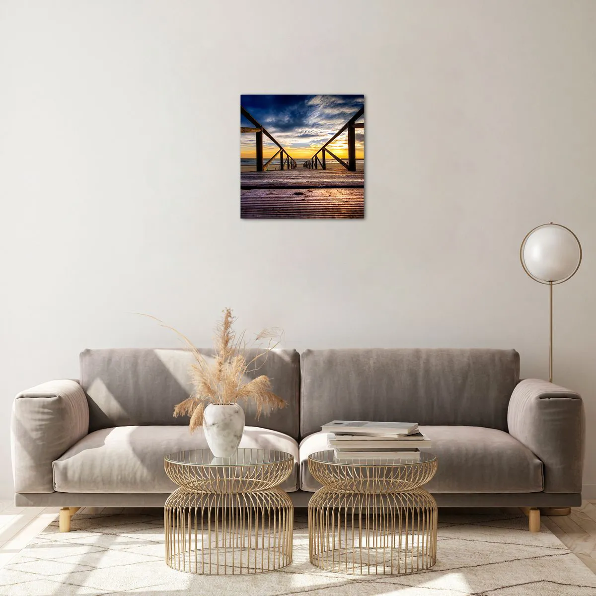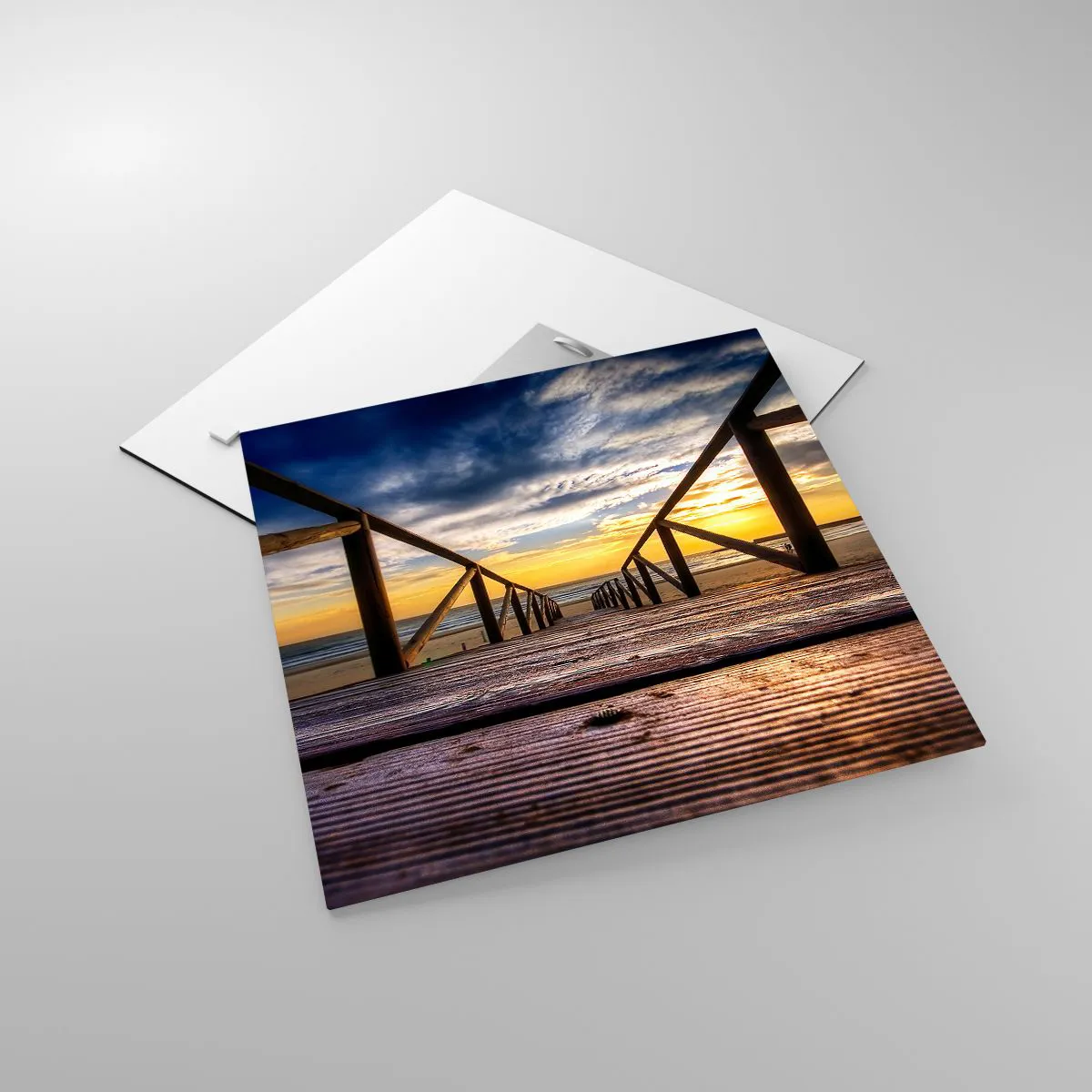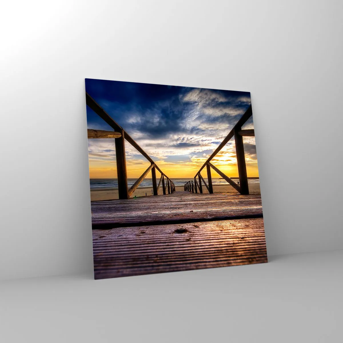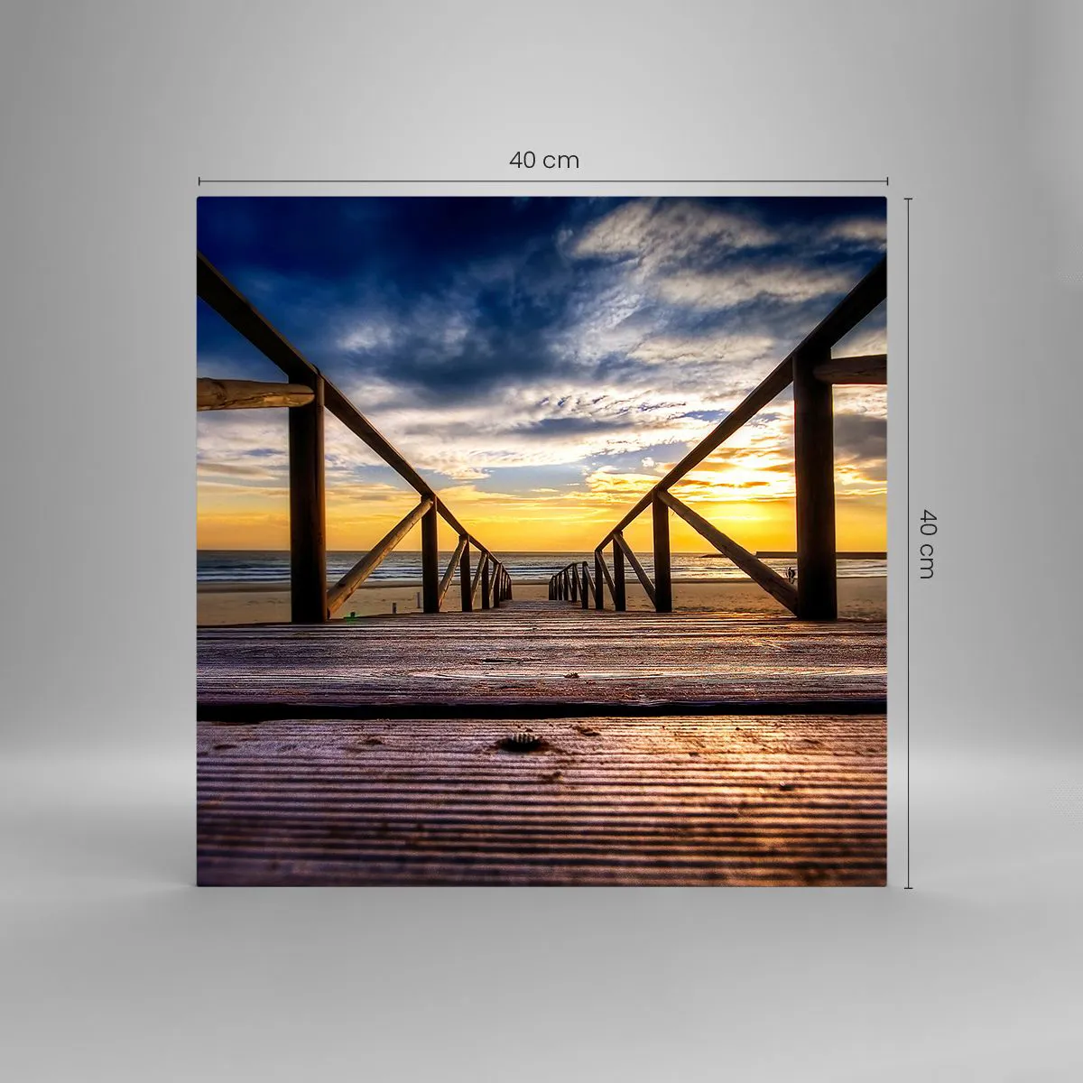Quadro em vidro - Direto para a praia tranquila ao pôr do sol - 40x40 cm