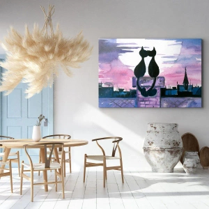 - Esta pintura retrata gatos pretos empoleirados em um telhado sob o luar, em estilo aquarela. Perfeita para interiores românticos e artísticos, a pintura mede 70x50 cm.