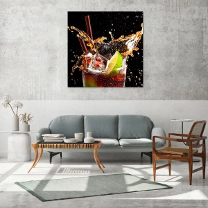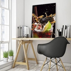O tema da pintura, relacionado às bebidas e seu caráter refrescante, é uma excelente escolha para quem valoriza soluções decorativas modernas e elegantes. O respingo das gotas e os reflexos da luz no vidro dão vida à composição e criam um efeito visual único que combina com qualquer ambiente.