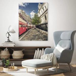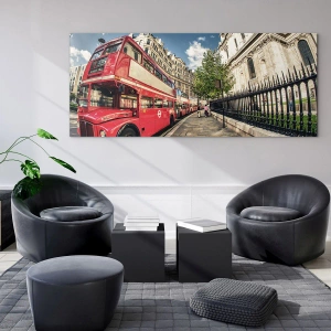 Quadro em vidro - Rua de Londres em cinza e vermelho - 120x50 cm