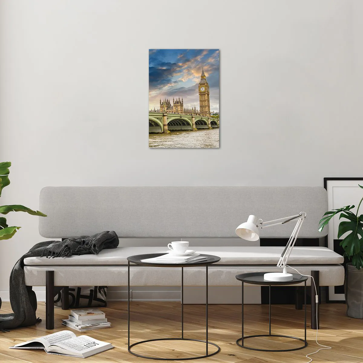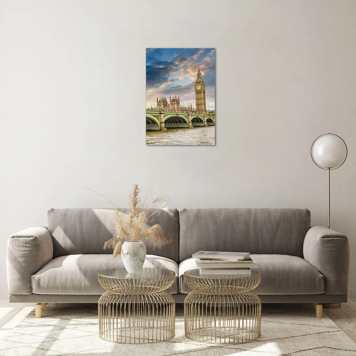 O quadro em vidro é feito de vidro de 4mm de espessura. As bordas do vidro têm um corte trapezoidal fosco. O quadro é segura de usar e pronto para pendurar – tem ganchos de metal presos à parte de trás do quadro e e espaçadores de espuma para regular a distância uniforme do quadro da parede.