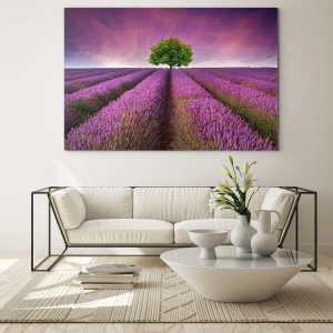 Quadro em vidro - Nos campos de lavanda - 100x70 cm