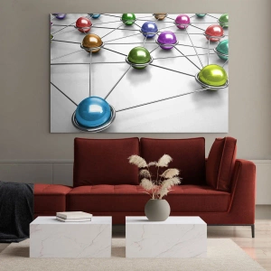 Quadro em vidro - Bolas coloridas conectadas por linhas em um fundo claro - 70x50cm - Teia cósmica - Decoração de parede moderna para a sala de estar e quarto ARTTOR