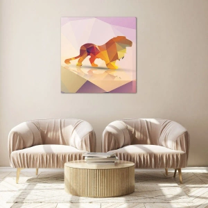 - Esta pintura, que retrata um leão geométrico em abstração colorida, combina design moderno com forma artística. Perfeita para interiores contemporâneos com um caráter distinto.