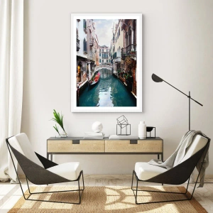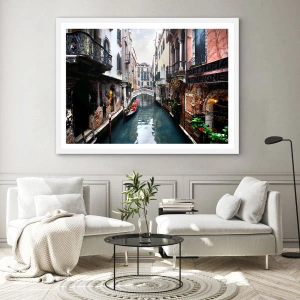 Pôster em moldura branca - Paisagem veneziana com gôndola e ponte - 40x50 cm