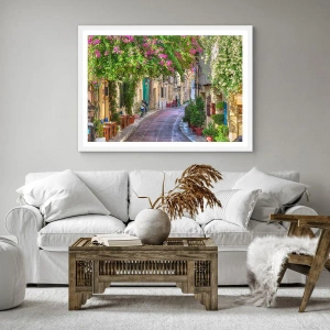 Pôster em moldura branca - Beco florido - 40x50 cm