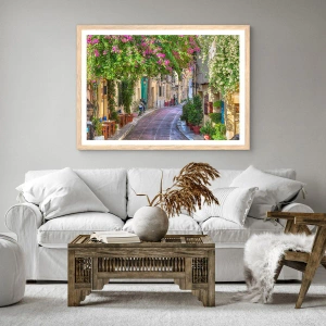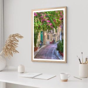 Pôster com moldura de carvalho claro - Beco florido - 70x50 cm
