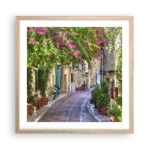 Pôster com moldura de carvalho claro - Beco florido - 50x50 cm