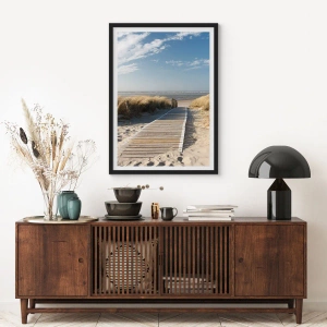 Pôster com moldura preta - Atrás da duna, ao som da relva - 30x30 cm