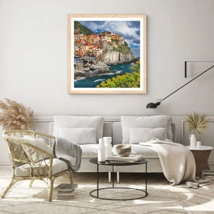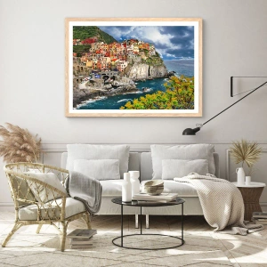 Pôster com moldura de carvalho claro - Um aglomerado nas rochas - 70x50 cm