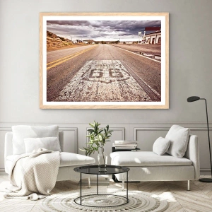 Pôster com moldura de carvalho claro - Mother Road - uma lenda americana - 61x91 cm
