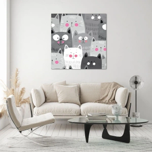 Quadro em vidro - O mundo dos gatos - 60x60 cm