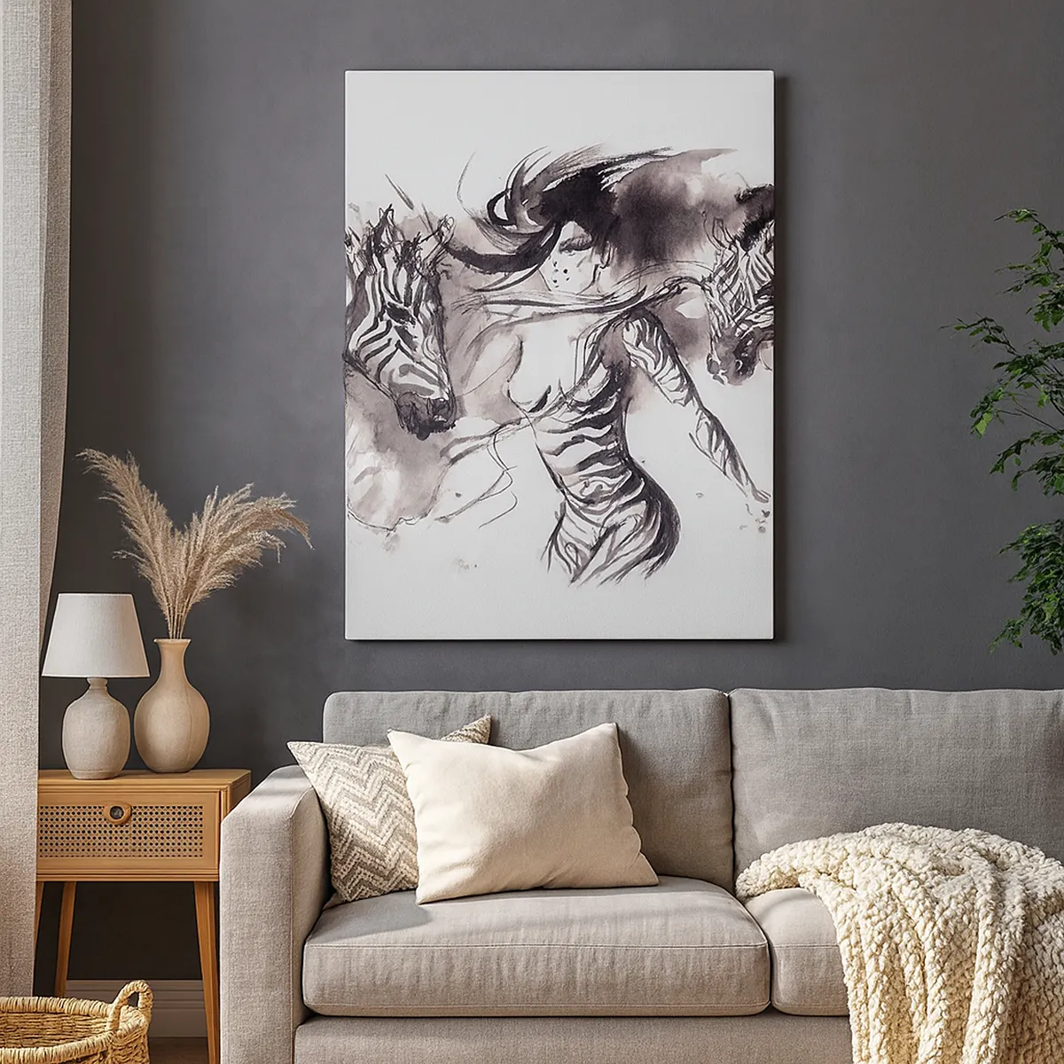 Quadro em tela - Dançando com as zebras - 55x100 cm