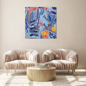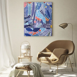 A decoração Jardim Havaiano traz frescor e uma atmosfera tropical ao interior, perfeitamente adequada para interiores modernos. A pintura se encaixa perfeitamente em salas de estar, quartos ou espaços de relaxamento, adicionando originalidade e um caráter exótico. As cores brilhantes e dinâmicas conferem energia e aconchego aos ambientes.