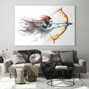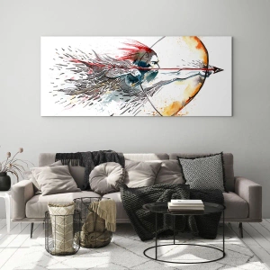 Quadro em vidro - Guerreiro mítico com um arco de fogo - 120x80 cm