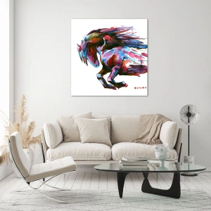 A inspiração para esta obra foi a força e a beleza da natureza, capturadas no simbolismo de um cavalo. A forma abstrata e as cores intensas conferem à composição um caráter moderno que se adapta perfeitamente a uma variedade de designs de interiores. Esta obra é repleta de energia e harmonia, encantando tanto os amantes dos animais quanto os amantes da arte contemporânea. Graças ao uso do vidro, a pintura não é apenas durável, mas também fácil de cuidar. Seu brilho e profundidade a tornam um ponto focal decorativo em qualquer ambiente. É também uma ideia perfeita para presente, certamente apreciada por qualquer pessoa que aprecie estética e decorações originais. Se você procura uma decoração de parede que capture o movimento, a energia e a beleza da natureza, "In Exaltation" é uma excelente escolha. Sua composição dinâmica e cores vibrantes trarão harmonia e estilo único ao seu interior.