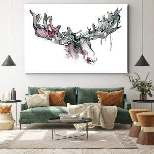 - Esta pintura em tela retrata uma aquarela artística de um alce com chifres abundantes. Detalhes sutis e uma composição distinta conferem à obra elegância e leveza.