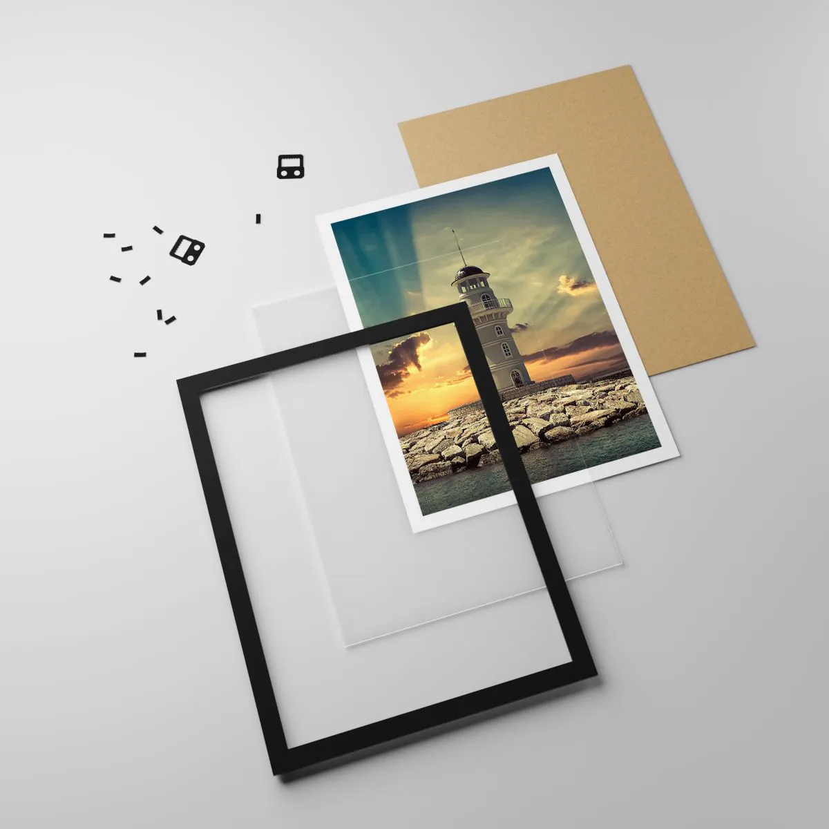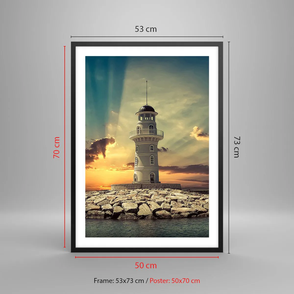 Pôster com moldura preta - Farol ao pôr do sol - 50x70cm - Luz - Bondade - Beleza - Decoração de parede moderna para a sala de estar e quarto ARTTOR
