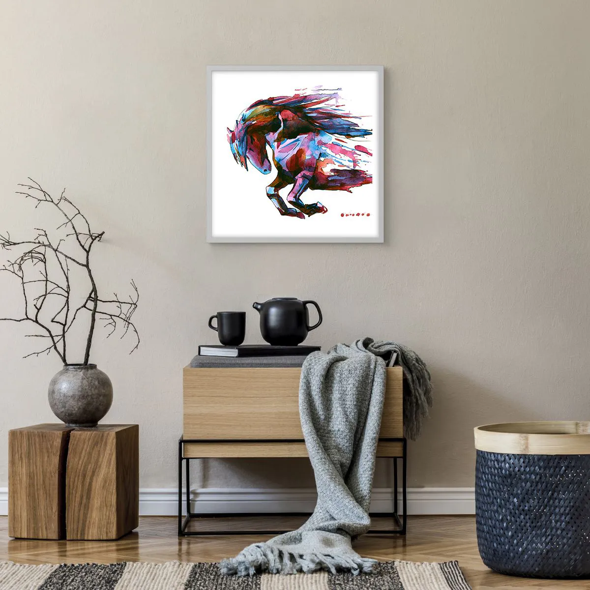• Animais, Abstrato, Cavalo, Arte, Animais, Branco, Vermelho, Roxo, Azul, Rosa, Quadrado