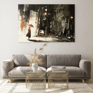 Quadro em vidro - A poesia do guarda-chuva vermelho - 120x80 cm