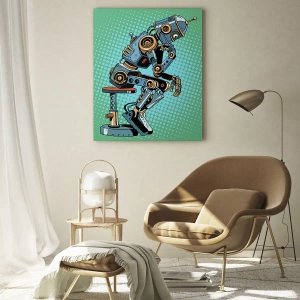 O motivo robô pensante não é apenas decorativo, mas também uma metáfora para o desenvolvimento da tecnologia e seu impacto na vida moderna. Esta pintura exala criatividade e incentiva a reflexão sobre o futuro e o papel da robótica em nosso mundo.