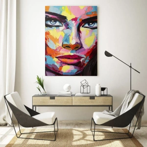 Pintura de parede - A alma também é colorida - Retrato colorido de uma mulher em estilo abstrato
