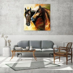 Quadro em vidro - Dois cavalos em uma composição artística e dinâmica - 70x50cm - Encanto em dobro - Decoração de parede moderna para a sala de estar e quarto ARTTOR