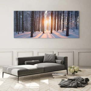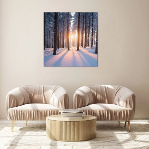 - A pintura retrata uma floresta de inverno com a luz do sol filtrando-se pelas árvores e iluminando a cobertura de neve. A harmonia da natureza e a luz suave criam uma decoração de parede única, perfeita para interiores com um estilo natural.