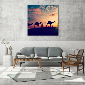 Esta decoração é a escolha perfeita para quem procura uma pintura com uma atmosfera exótica. Uma caravana de camelos no deserto é uma imagem repleta de paz, da beleza da natureza e da atmosfera de peregrinação.