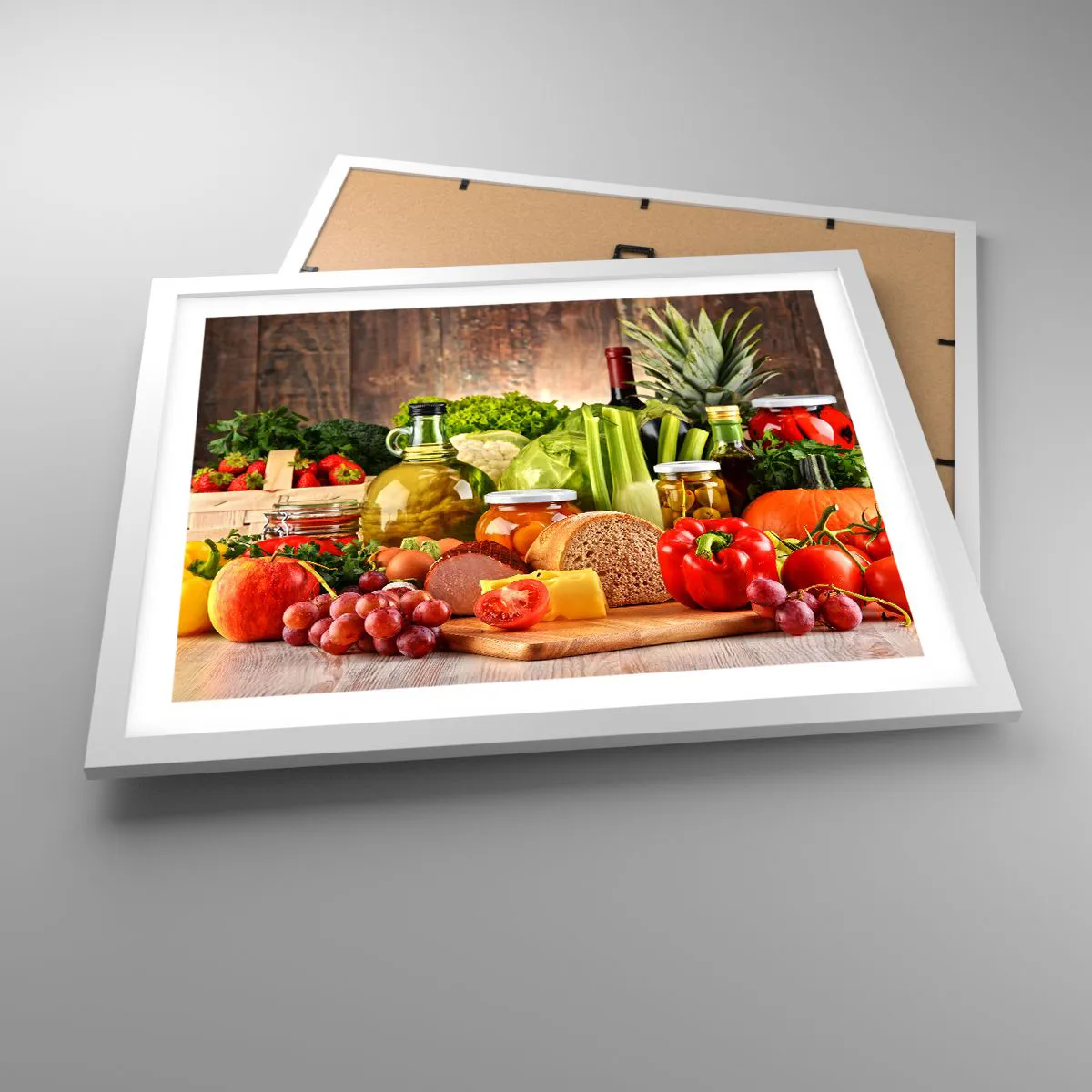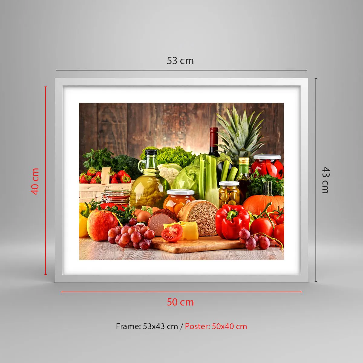 Pôster em moldura branca - Defumados, cozidos, em conserva - 50x40 cm